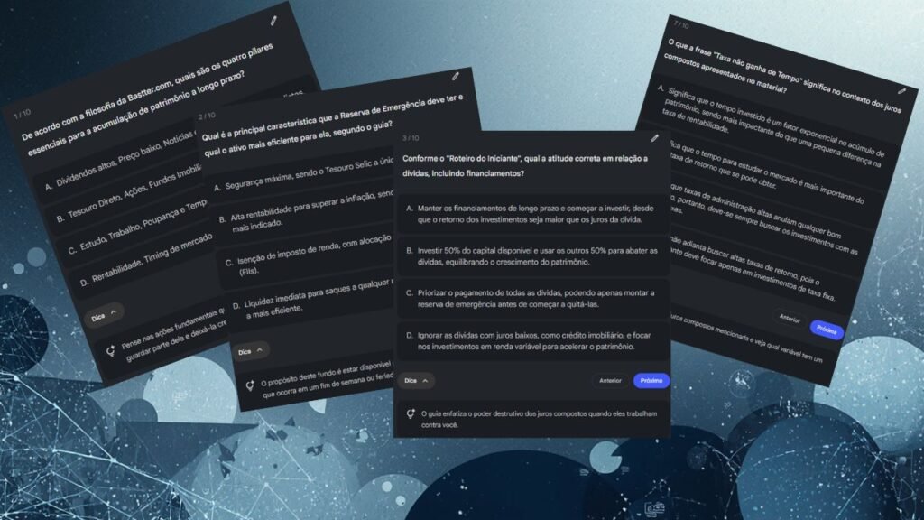 Isso garante que você realmente entendeu os conceitos antes de colocar seu dinheiro em risco na Bolsa de Valores.